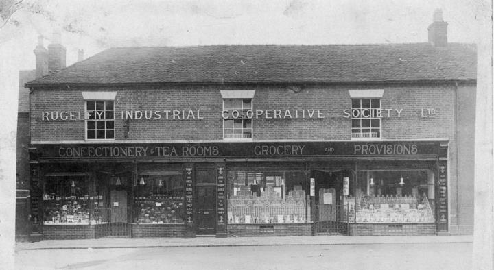 Description:Rugeley Industrial Co-operative Society's shop and tearooms in Market Square, Rugeley. Built in 1916 it was rebuilt as a modern store c.1966. The store is currently (2025) an Iceland.