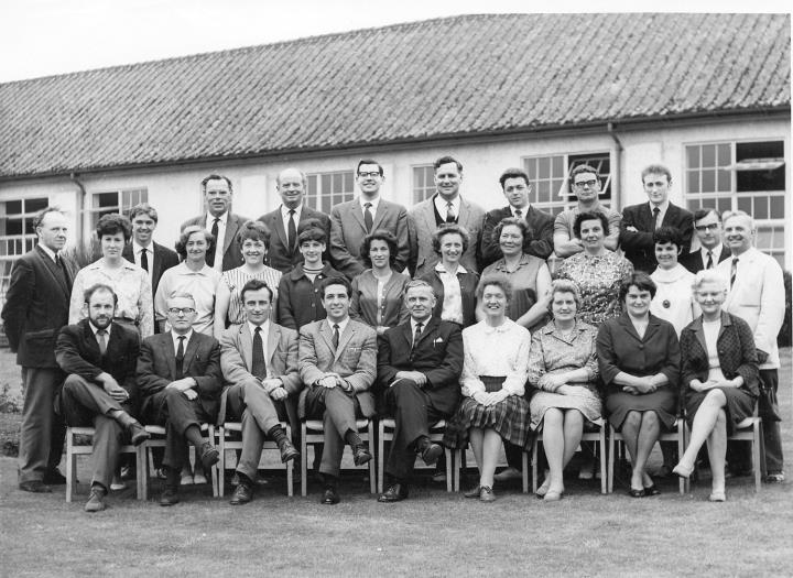 Front row (left to right): Roger Haughton (Art), unknown, Fred Corlett ( Metalwork)