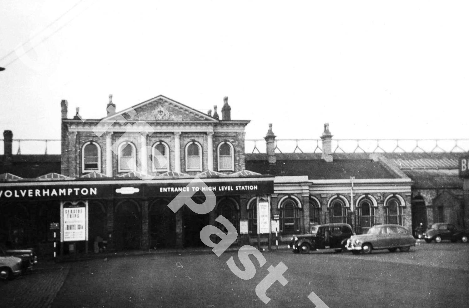 The Station is thought to have been built by local architect Edward Banks for the Shrewsbury & Birmingham Railway (S&B). It was opened in 1849, originally named Wolverhampton General Station and renamed in 1853 to Queen Street Station. At this time the nearby Great Western Railway (GWR) station was being built which became known as the Low-Level Station. The Queen Street Station was officially renamed as the High-Level Station in 1885. Its ownership and usage progressed over time with: Great Western Railway (GWR), London & North Western Railway (LNWR), Midland Railway (MR), London Midland & Scottish Railway (LMS) and British Railways (BR). The building was demolished 1965 and replaced by a new station on the same site.