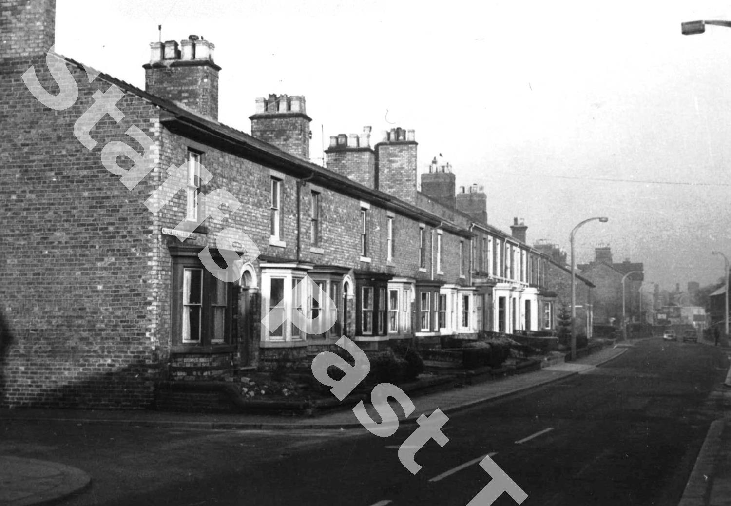 Description:Numbers 60 to 73 Wolverhampton Road, Stafford. The photograph was taken by the junction with Telegraph Street which is on the left, this view is little changed today (2025).