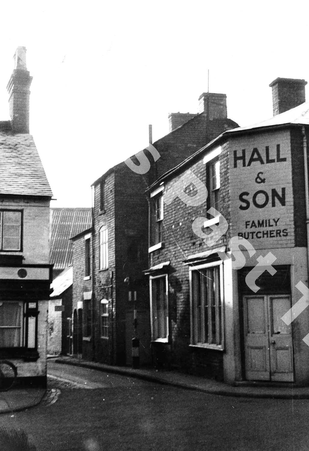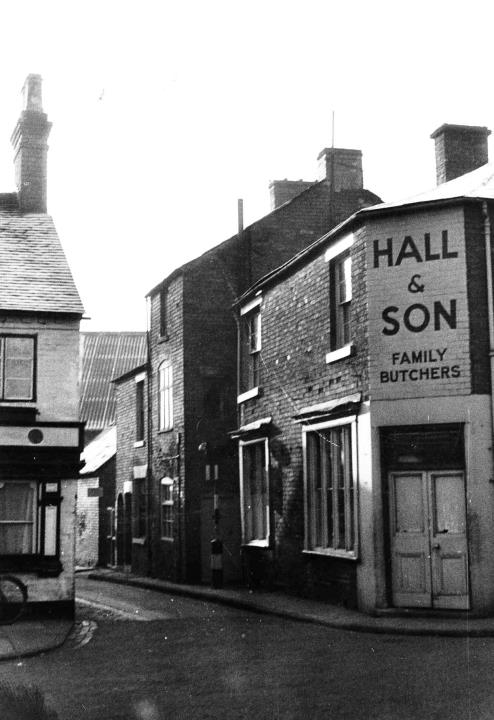 Description:Hall & Son. Family Butchers, 19, Mill Street on the corner of Water Street. They had a butchery business here by 1914. It was demolished along with other buildings on this side of Water Street around 1977-78.