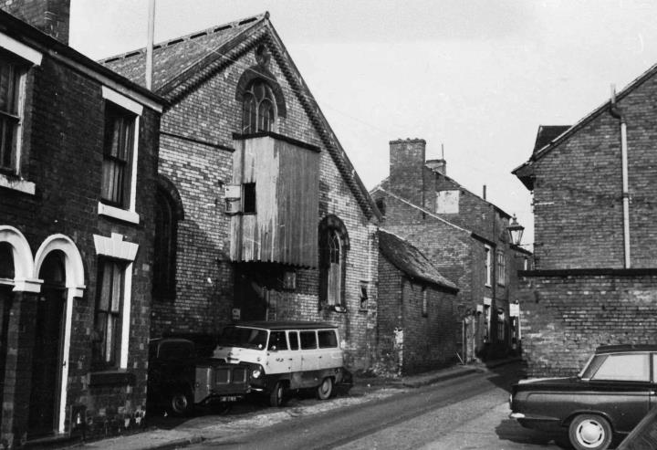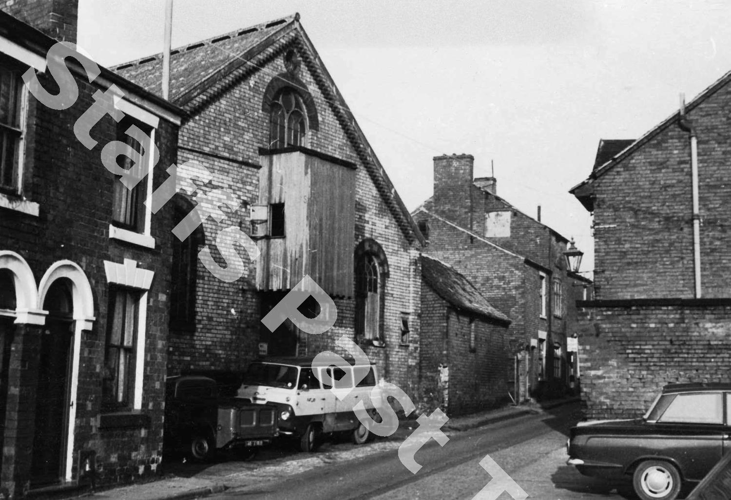 On the left is the old Baptist Church which possibly dates from around 1858 when first Baptist congregation met in Stafford. Services were transferred to the new Chapel at The Green in 1896. Later it was used as a meeting room and then a corn mill, at the time of this photograph it was being used as a warehouse. It was demolished about 1977-1978.