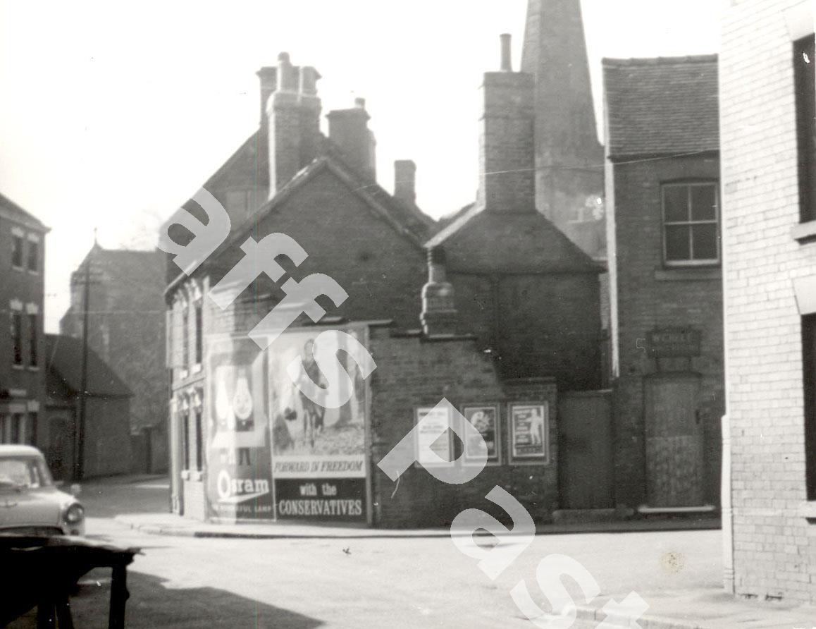 Description:Chell's butcher's shop can be seen facing on the right hand side. beyond can be seen the spire of St. Mary's Church. All the buildings in the foreground to the right of the picture have been demolished to make way for the carpark.
