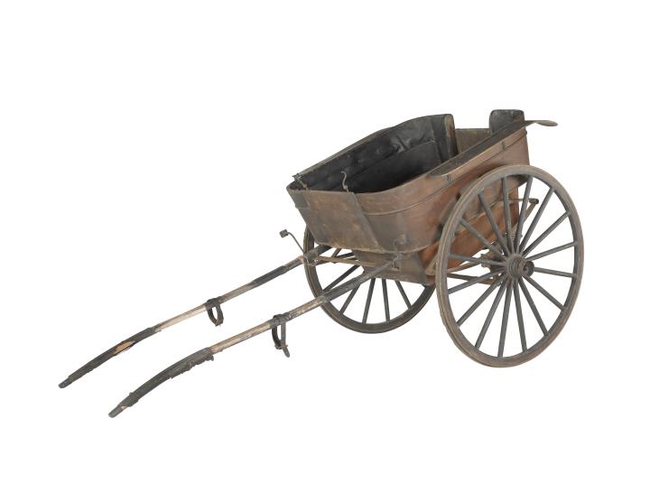 Description:This is an early 20th century example of a large Governess Cart with deep top panels. The maker is not known, but it was made for the 20th Earl of Shrewsbury for family use at Ingestre. The Governess Cart or Tub Cart was one of the most popular vehicles on English roads between 1900 and the late 1920s. Designed for a single pony, they were very safe and reasonably comfortable. The driver sat at the back on the right-hand side and had a full view not only of the pony but also of the passengers sitting on the inward facing seats. It was therefore ideal for carrying children and was often used by a Governess. Unfortunately the driver’s body had a continual half twist which could be very uncomfortable. The rear access also made it difficult for the driver to get to the head of the pony in an emergency. Therefore only the calmest pony or even donkey could be used on a Governess Cart. This horse-drawn vehicle is from the Staffordshire County Museum collection. You can find out more about the Governess Cart and see 3D imaging that you can rotate and zoom in to explore detail at the Staffordshire Carriage Collection website: http://www.staffordshirecarriages.org.uk/governess-cart/