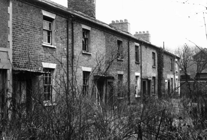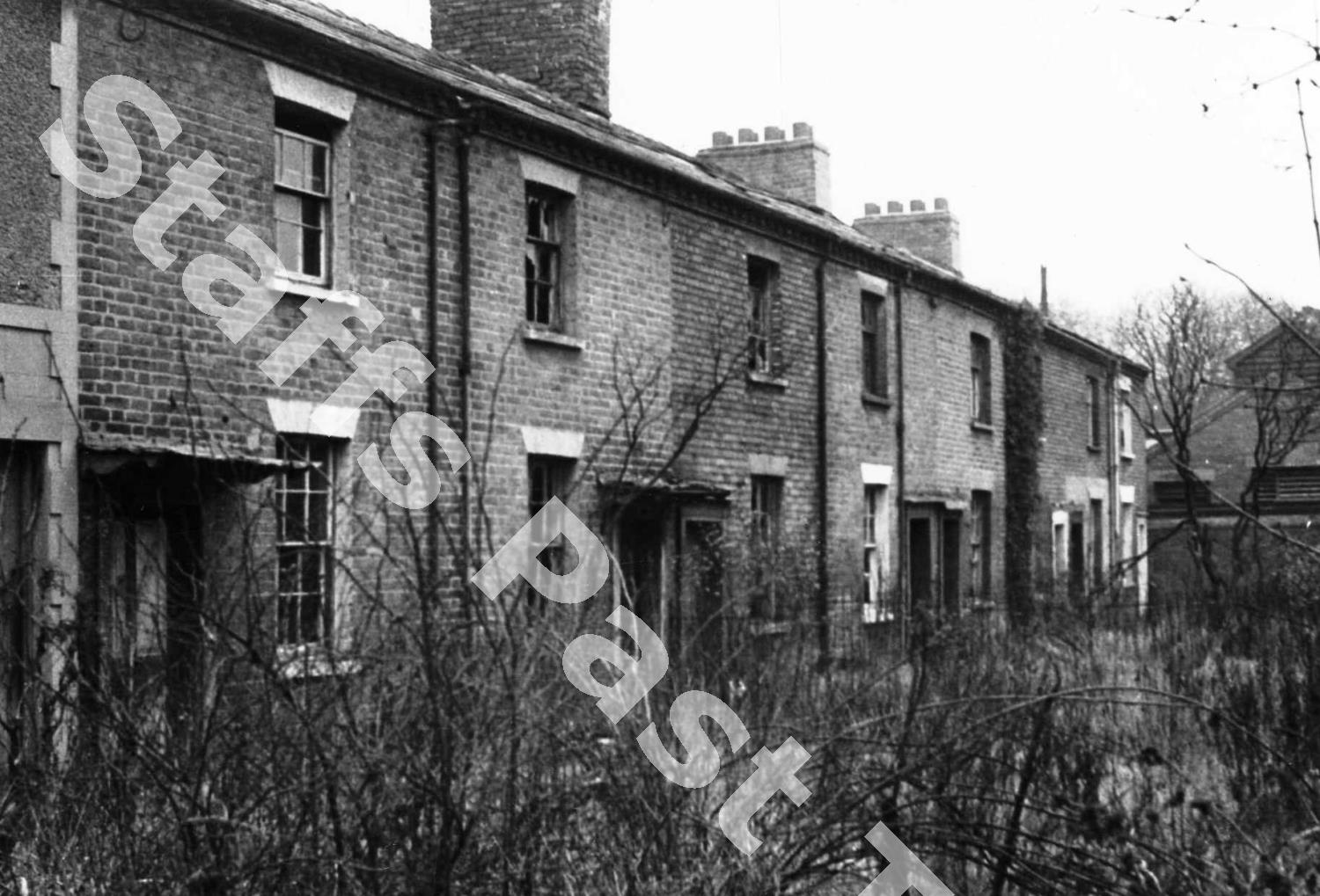 Description:Terraced houses known as Union Buildings, Union Street, off Gaol Road, Stafford. This view was taken prior to demolition of the houses and Union Street which disappeared due to redevelopment of the area and the expansion of adjacent Stafford Prison buildings.