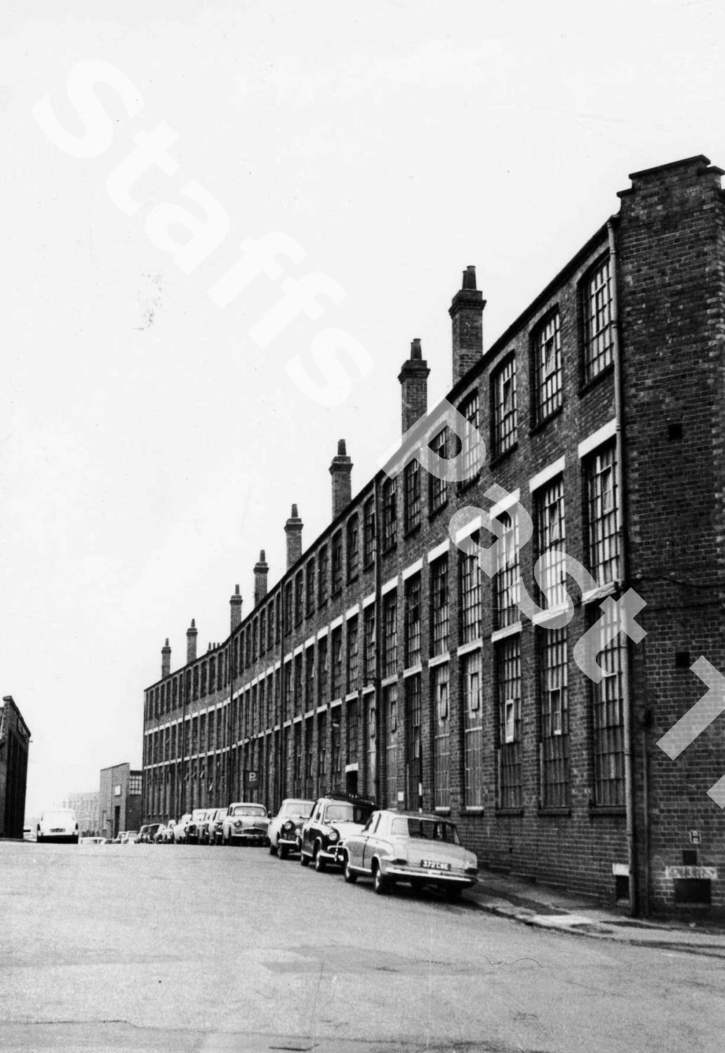 The main building still exists. It is being (2020-2025) converted into a luxury apartment development known as 'living at SUNBEAM'. The site fills a block bounded by Paul Street, Pool Street and Jeddo Street. The nearest car in the picture is a Vauxhall Victor FB (1962-1964).