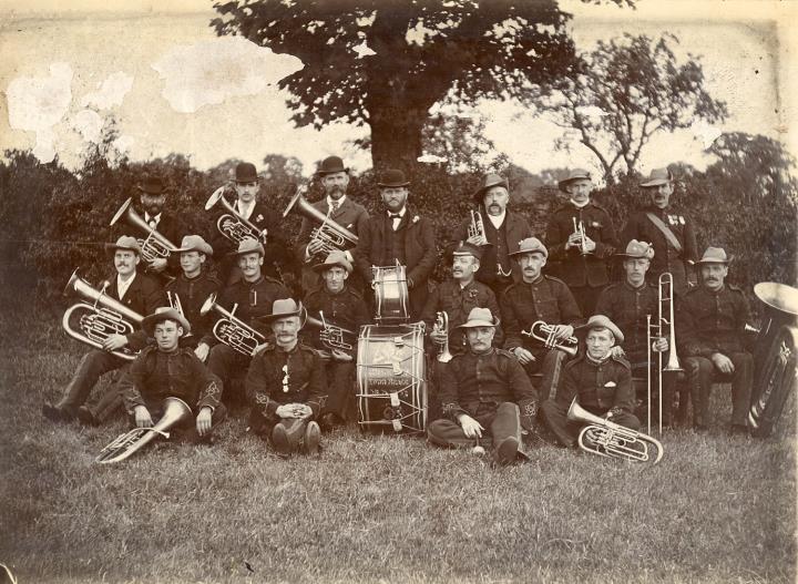 Description:Standing in the centre of the back row, wearing a bowler hat is Mr J. Roberts, the conductor. The taller man to his right is Mr C.F. Mason the builder, whose son Fred later married Mr Roberts' daughter Cissie.