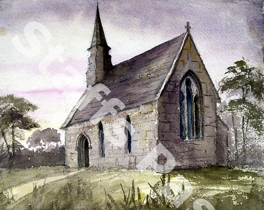 Description:This painting shows the chapel of ease built in 1848 on land given by Lord Norton. In 1865 this chapel became the chancel of a new parish church when the nave was added in 1865.