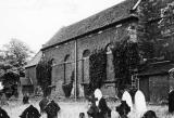 The church was rebuilt in 1407, and dedicated to the Holy Trinity, but burned down in 1738 leaving only the chancel and tower. The tower was originally surmounted with a spire. By 1733 the building was in a ruinous condition with inadequate foundations, bulging walls, and generally thought to be incapable of carrying the additional weight of the tall spire. Total demolition of the church was considered but deemed economically impossible for the parish to fund. A successful appeal was made to the Lord High Chancellor for funding for its restoration probably to the design of architect Richard Trubshaw of Little Haywood. It re-opened in 1740, the spire being replaced by a tower decorated with four Grecian-style urns and a weathervane. The urns have subsequently been removed. At the base of the tower an external stairway can be seen leading to the belfry (which carries three bells) and gallery.