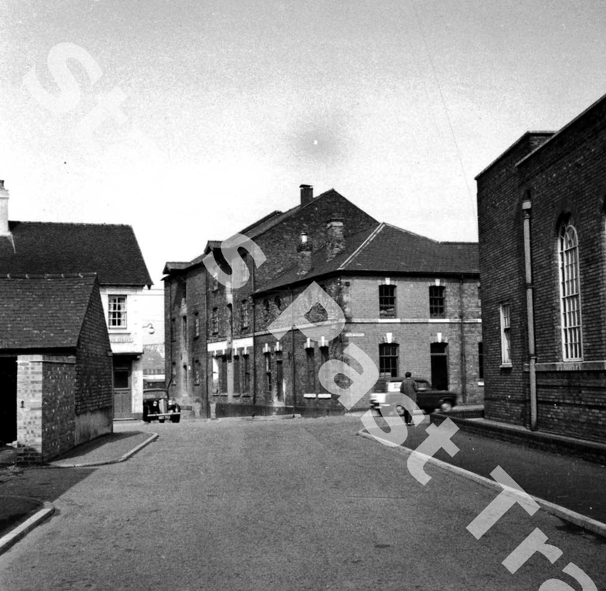 The buildings to the left have since been demolished. The building on the right was the Staffordshire Police garage and workshop, demolished in 2015 and replaced with a block of apartments.