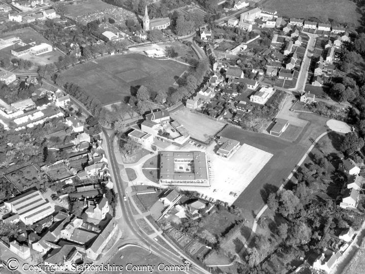 Description:A Photograph from the 1960s showing the village of Wombourne from the air. Copyright : Staffordshire County Council