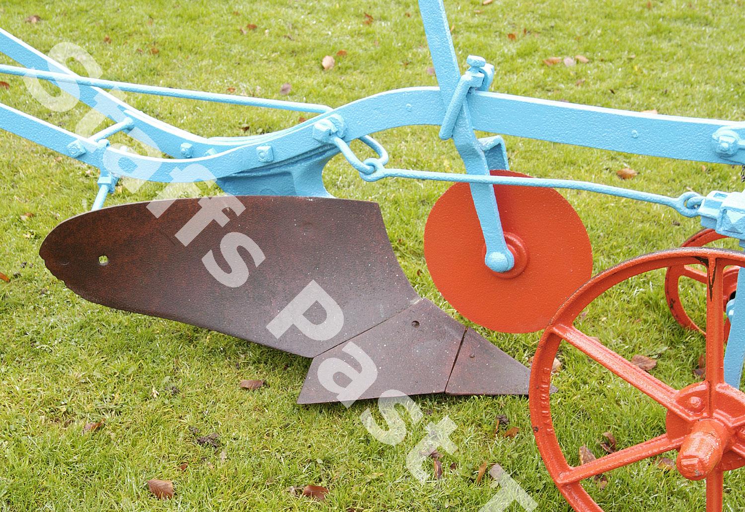 Description:Close-up of Ransomes, Sims & Jeffries plough showing share and disc coulter.