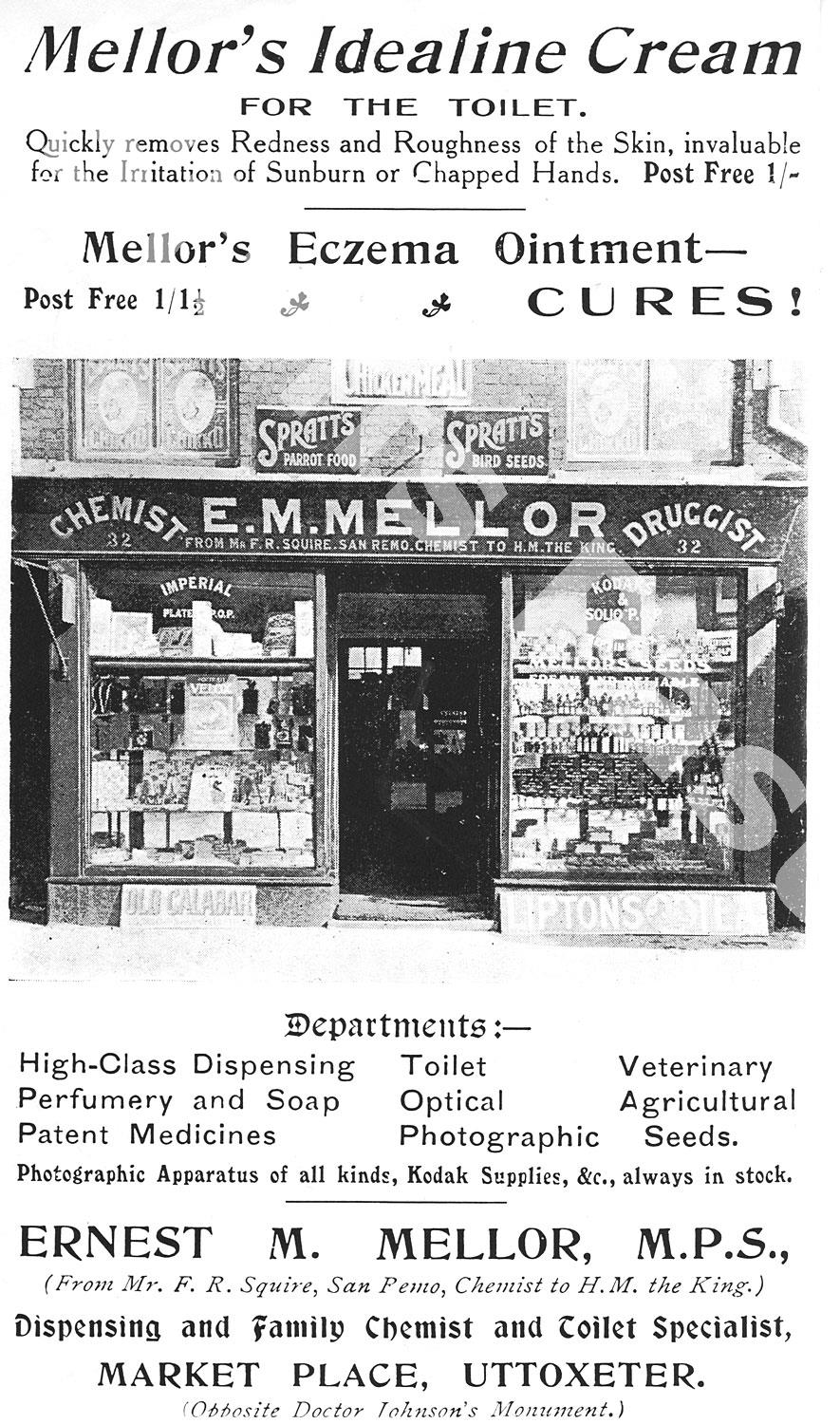 Ernest Martin Mellor, known as 'Emm', was a chemist in Uttoxeter from 1906 to 1960. At one stage he ...