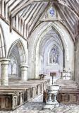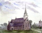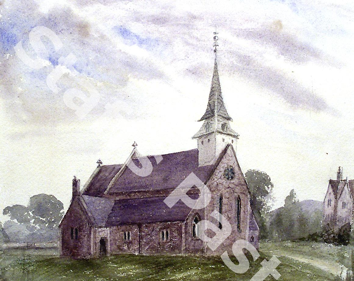 This is one of a series of watercolours of all the churches in Lichfield Diocese in Staffordshire, painted by Miss Theodosia Hinckes and Mrs Rebecca Moore (wife of the Archdeacon of Stafford for Lichfield Cathedral) for Lichfield Cathedral between 1857 and 1861. Reproduced by Kind Permission of the Chapter of Lichfield Cathedral who retain copyright.