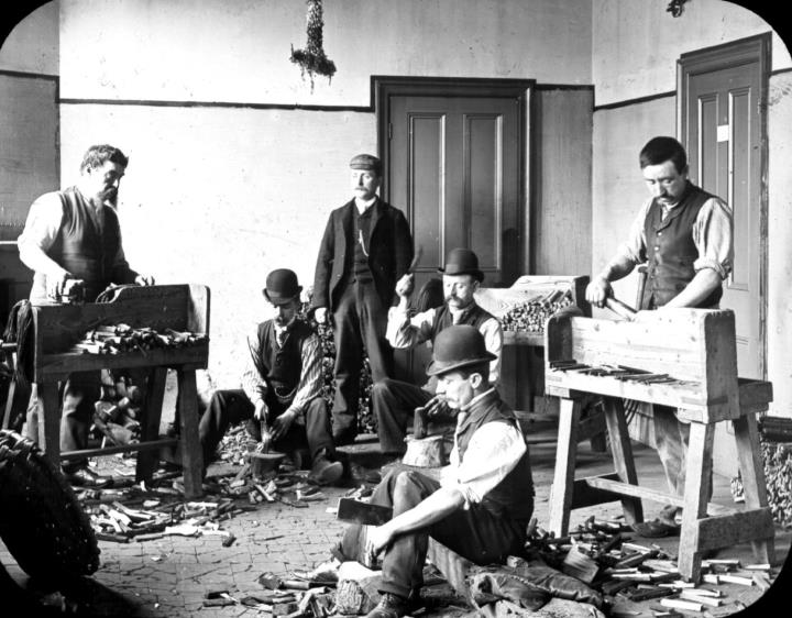 Lantern slide view of the Lichfield Diocesan Labour Home for Men on the corner of Austin Friars and ...