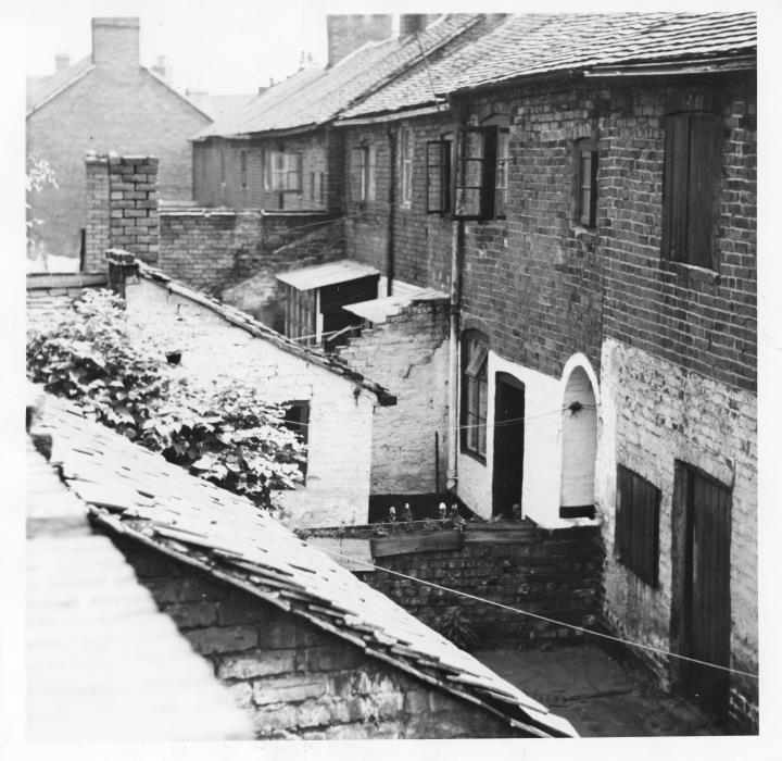Rear View of Bow Street. These houses were replaced with commercial buildings.