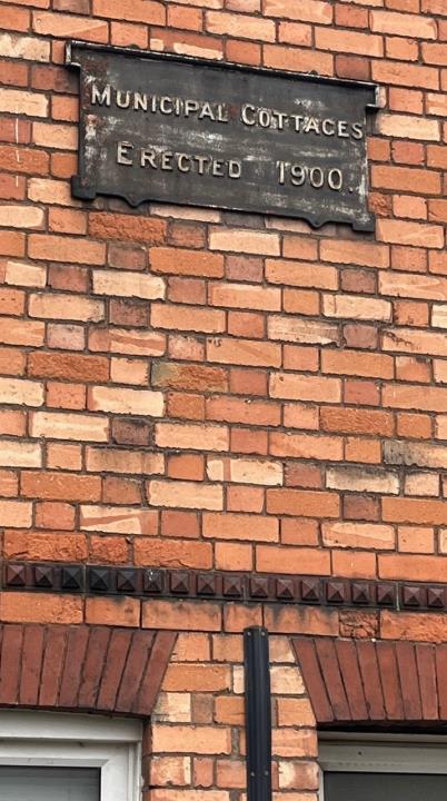 Description:This nameplate is affixed to on the front wall of Nos. 33 and 34 Broad Eye, towards the right end of the terrace of houses named 'Municipal Cottages', which were erected in 1900.