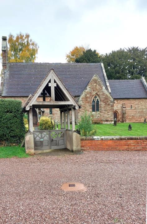 Looking north through the lych gate towards St. John’s Church in Stretton.
