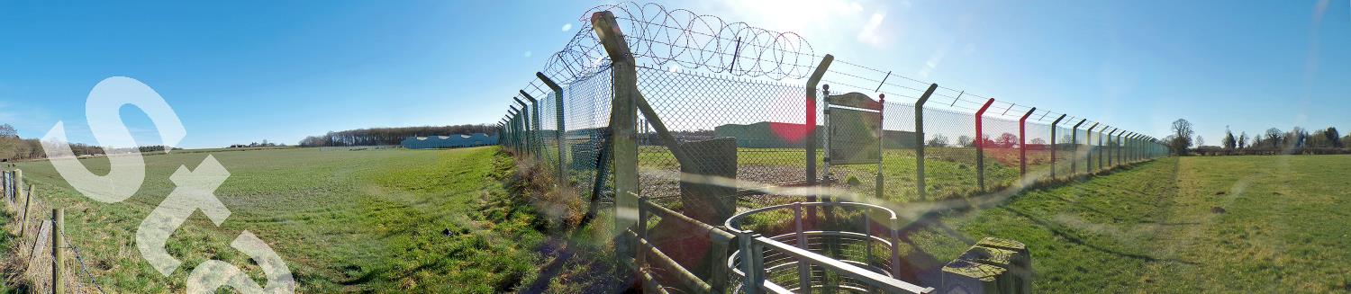Description:Panoramic view of the battlefield looking east, across the Royalist positions and the direction they approached from Stafford. The battlefield memorial and information panel can be seen just inside the chain-link fencing, which marks the boundary of Ministry of Defence land. Hopton Heath was only pitched battle of the 17th century civil wars to be fought in Staffordshire - other military action was confined to sieges (such as at Lichfield) or smaller-scale skirmishes. A Parliamentarian force advancing on Stafford was confronted by Royalist troops who were occupying the town. The fighting was marked by repeated Royalist cavalry charges and the death of their commander, the Earl of Northampton. However, the Parliamentarians withdrew from the field at the end of the fighting, abandoning their artillery which was subsequently captured by the Royalists. Both sides claimed victory, but it is largely considered indecisive by modern historians. However, the Parliamentarian aim of capturing Stafford was thwarted - although the town would later fall to them due to treachery. The battlefield today is partly agricultural land and partly property of the Ministry of Defence. However, public footpaths crossing the area allow a good view of much of the field.