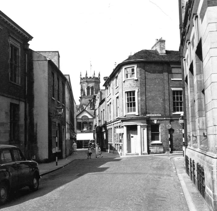 This view of Martin Street in Stafford looks towards Greengate Street and shows several shops and offices ...