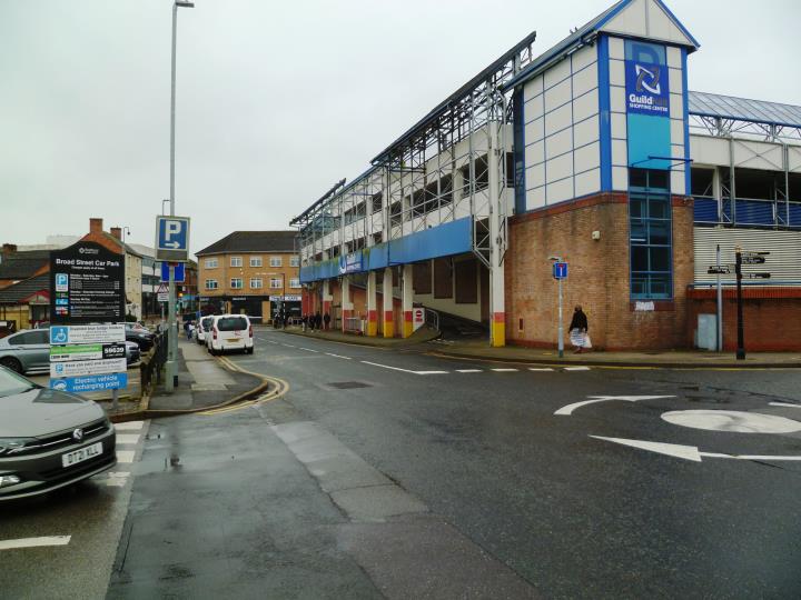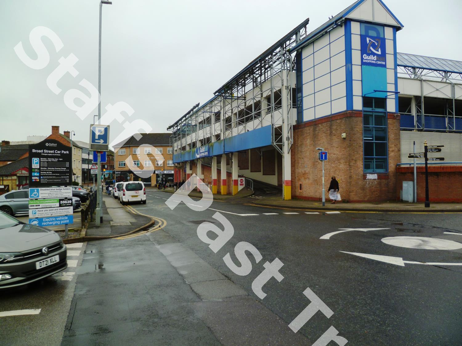 Description:During 2025 part of the Guildhall Shopping Centre, all the Market Hall and the overhead car park were demolished to make way for a major redevelopment of the area. This view was taken by Broad Street Car Park near the junction with Earl Street, Stafford.