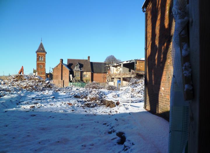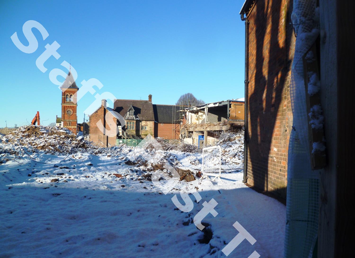 Description:This view shows the demolition of Stafford’s Market Hall along with the overhead car park and part of the Guildhall Shopping Centre. On the left is the tower of the Wesleyan Methodist Chapel in Chapel Street. In the centre the rear of the former Noah's Ark Inn can be seen, this was later known as The Surgery Bar, which subsequently closed. It was reported in the Staffordshire Newsletter that the Market permanently closed on 12 October 2024. During 2025 part of the adjacent Guildhall Shopping Centre, all the Market Hall and the overhead car park were demolished to make way for a major redevelopment of the area.