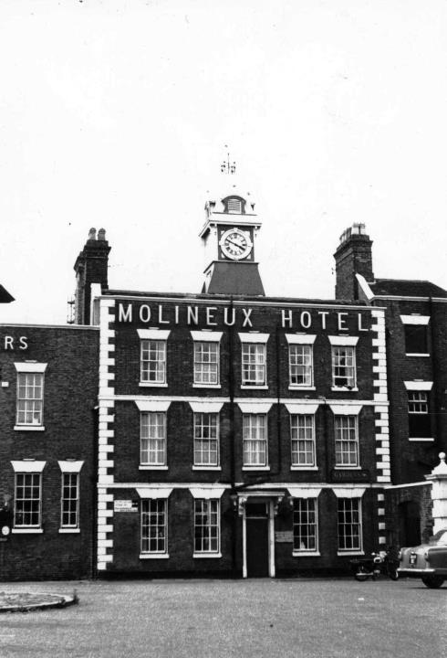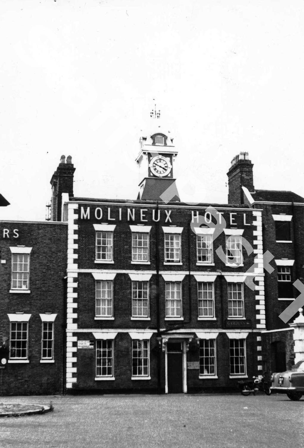 The Grade II* listed Molineux Hotel, photographed in 1966. It is currently (2026) the home of Wolverhampton's ...
