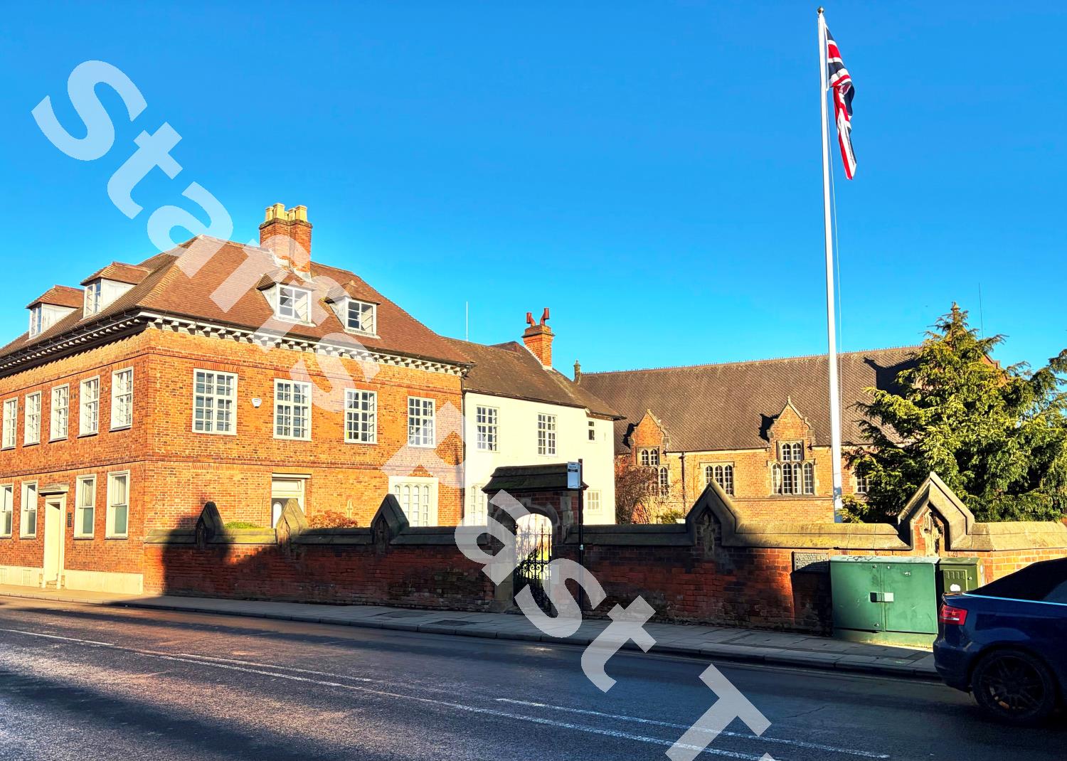 Description:No. 45, St. John Street, Lichfield is Grade II listed (together with the attached wall and gates). It was built around 1682, as the Grammar School Headmaster's House with boarder's accommodation in the attic rooms and an 18th century schoolroom addition to the rear. Noteworthy pupils include Samuel Johnson, David Garrick, Joseph Addison and Elias Ashmole. The former school building, set back to the right of Tudor style, and the front-wall were built in 1849-1850 to the design of local architect Thomas Johnson & Son. Note the historical information plaque affixed to the wall immediately to the left of the green telecommunications cabinet.