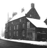 A snowy view on the south side of Eccleshall High Street.