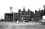 The Grade II* listed Molineux Hotel, photographed in 1966. It is currently (2026) the home of Wolverhampton's City Archives. In the background the Wolverhampton Wanderers Football Club's 'Molineux' ground ...