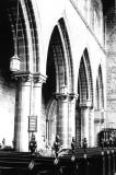 On the left, four of the five arcades can be seen separating the nave from the north aisle. The pulpit stands to the left of the tower arch. Note ...